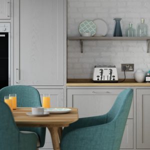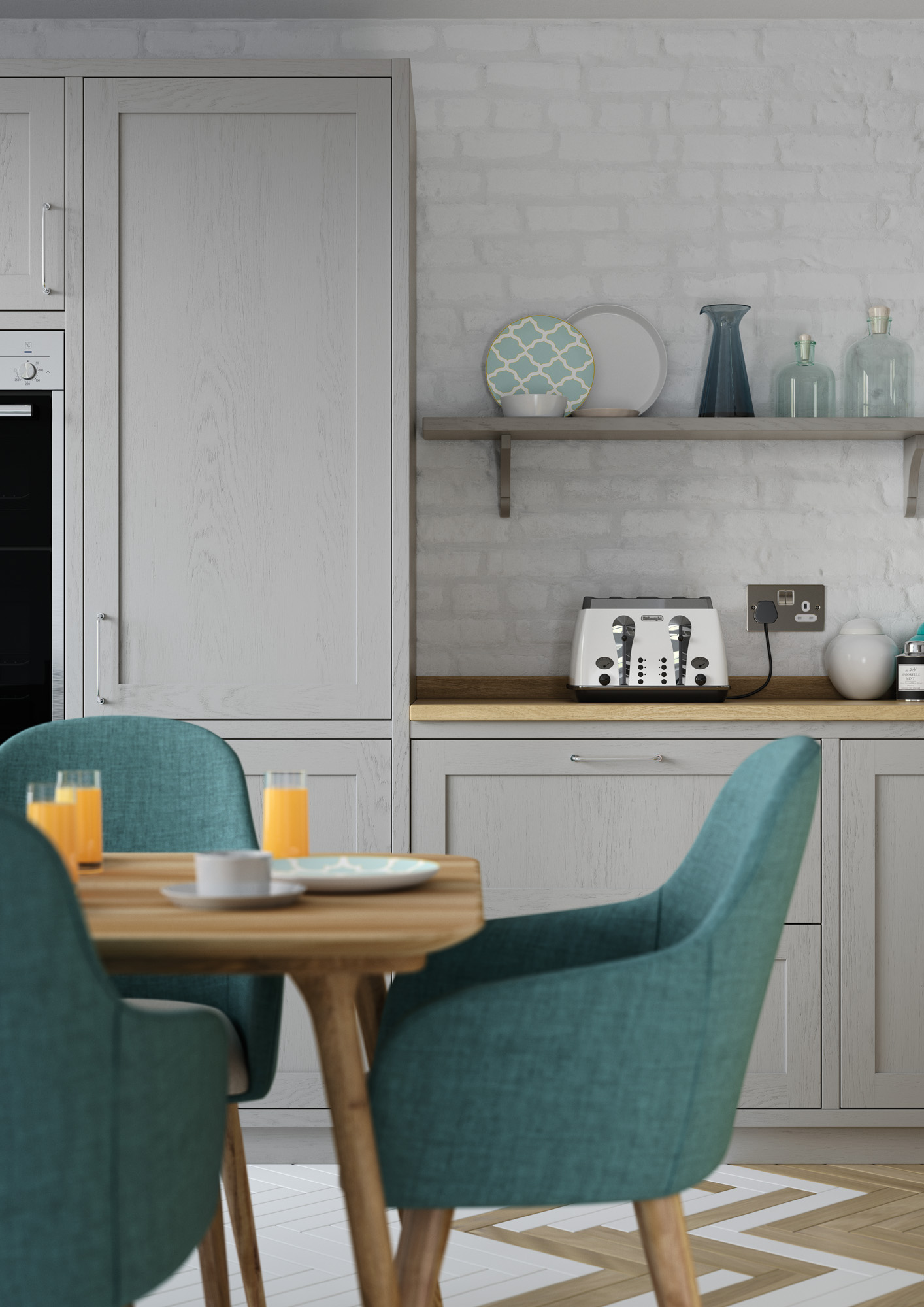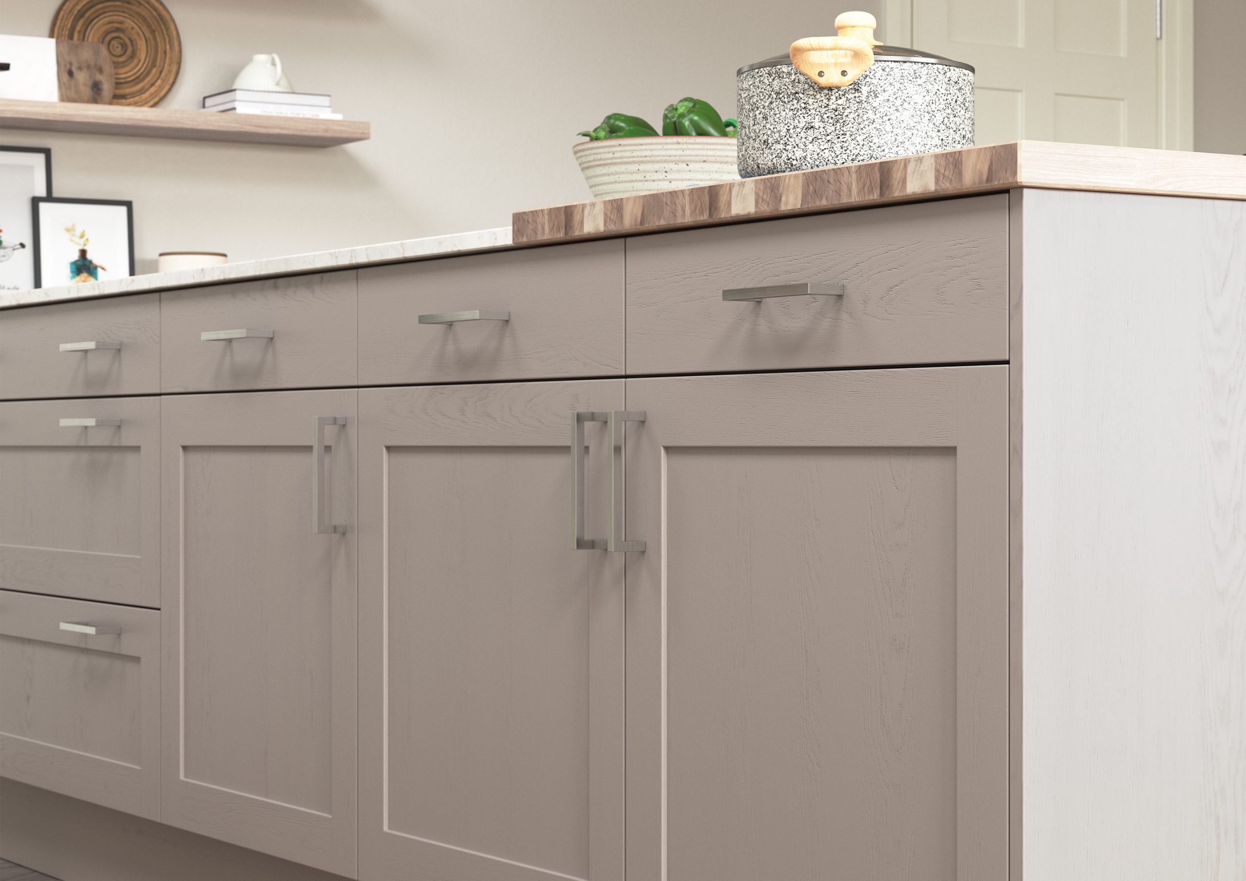 The stunning simplicity of the Aldana shaker style door is accentuated by its narrow frame and subtle grain, providing a refined look and feel. This door is accompanied by a host of contemporary accessories that will expand your design options and create a kitchen that meets all your expectations.