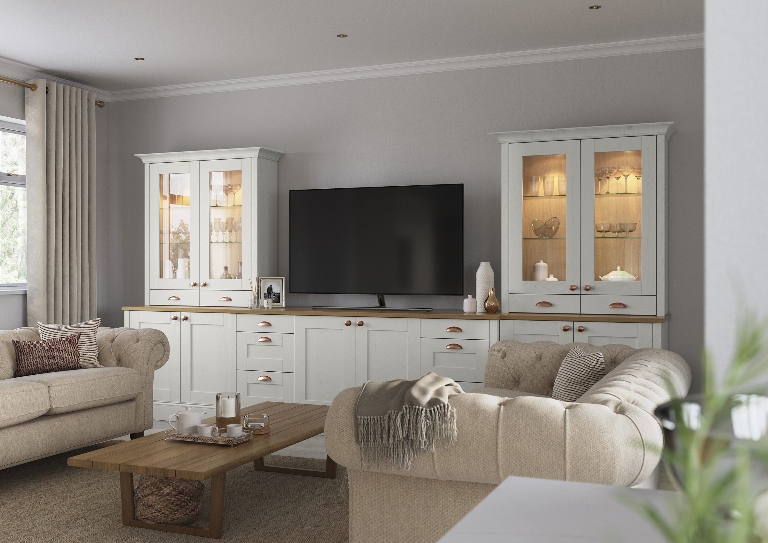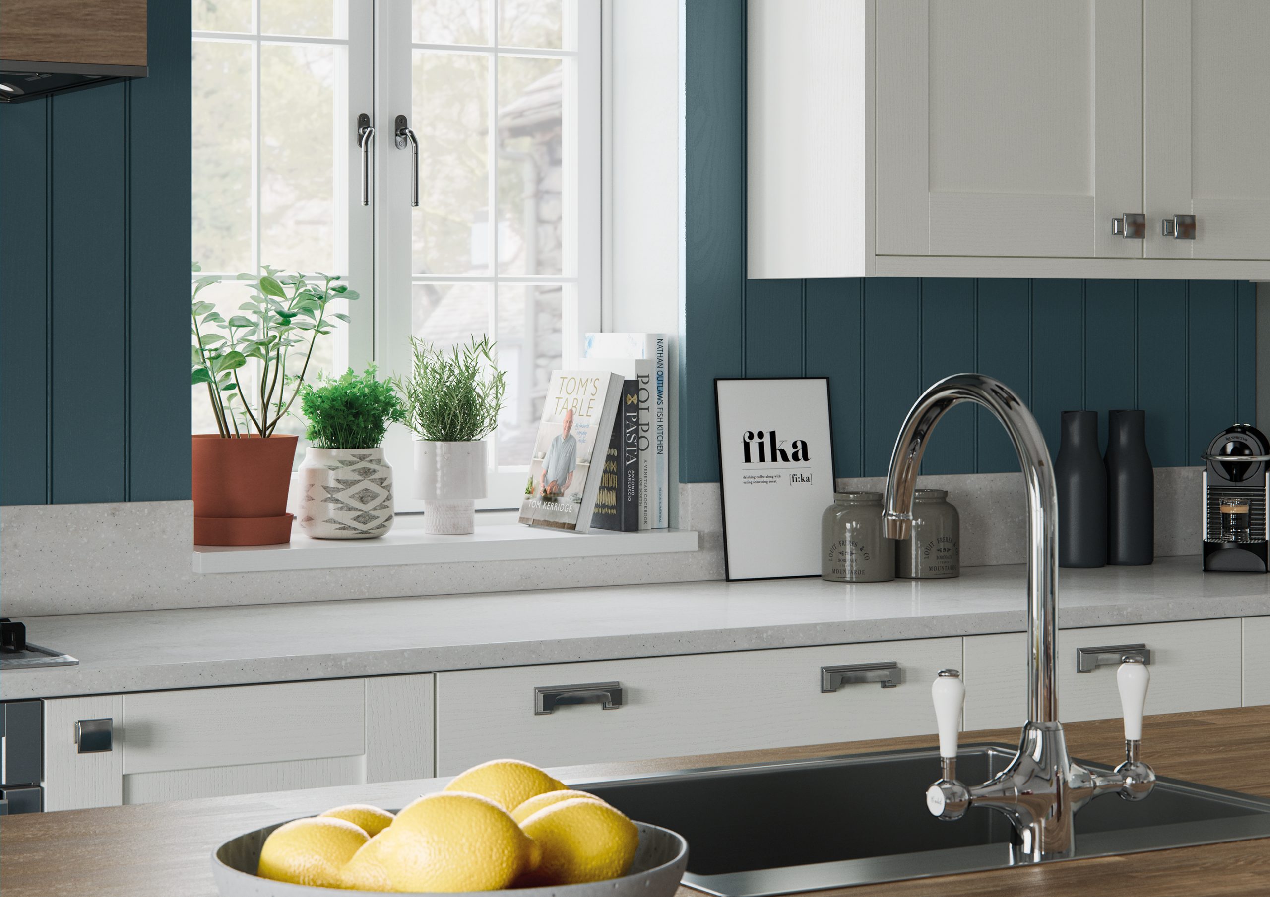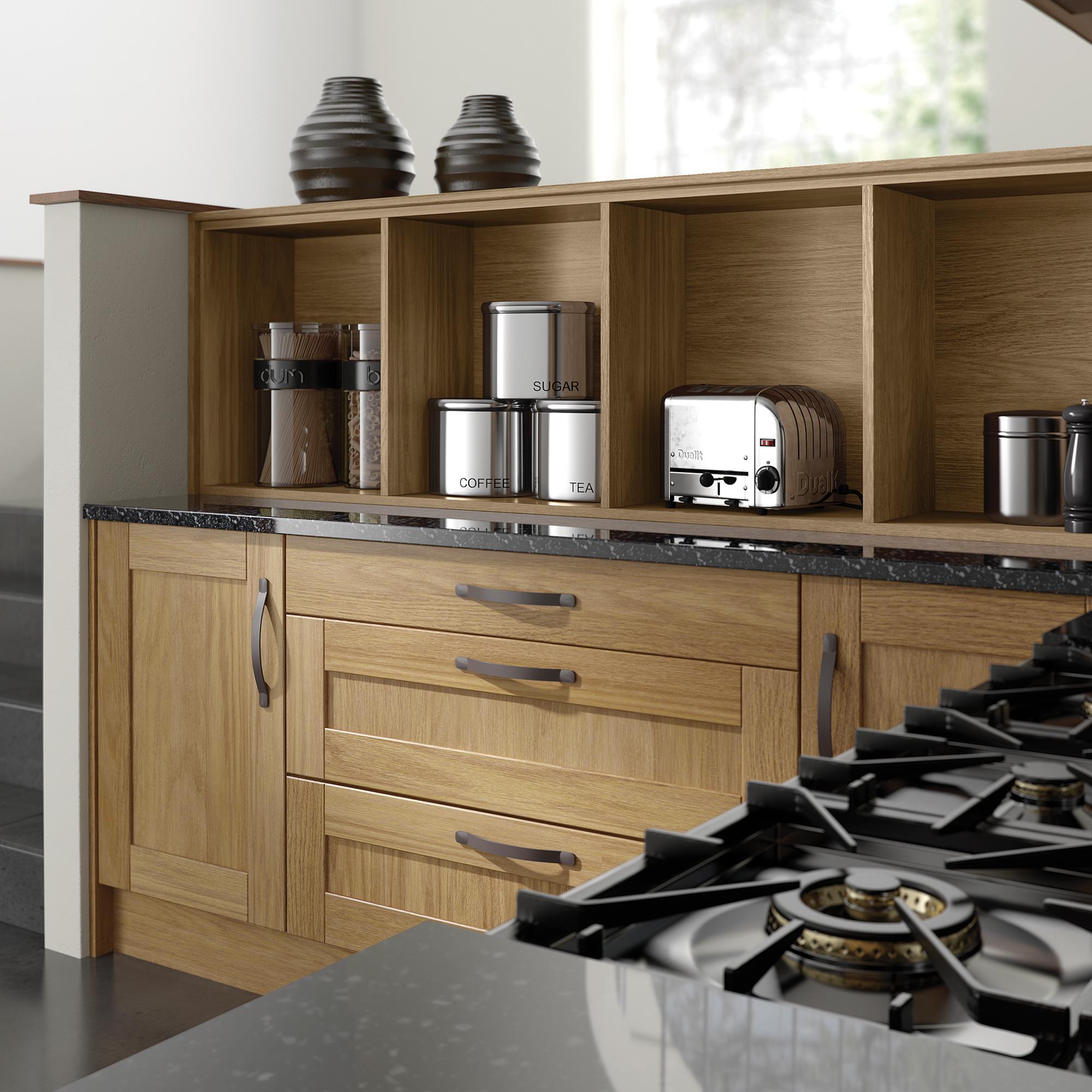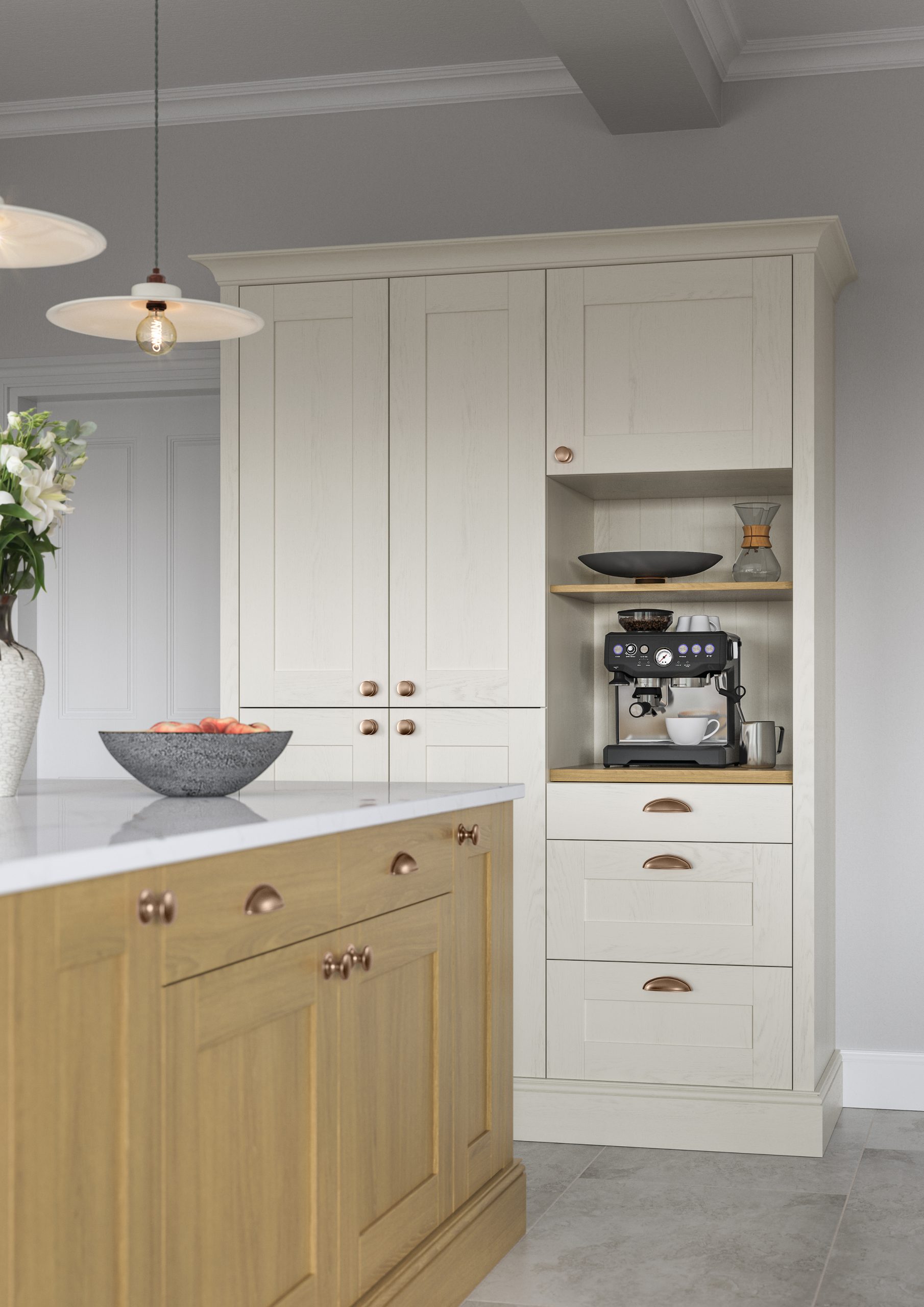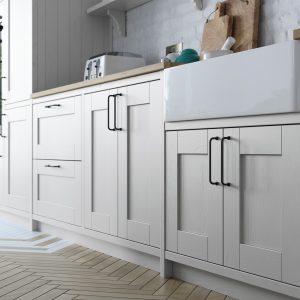 Effortlessly chic and stylish, the Madison shaker door with v-groove and visible grain makes an impressive statement with its simple detailing and selection of accompanying designer accessories. Classic in both function and form Madison will fit happily into any sized space to bring you a kitchen that works hard and looks fabulous.