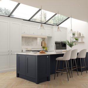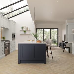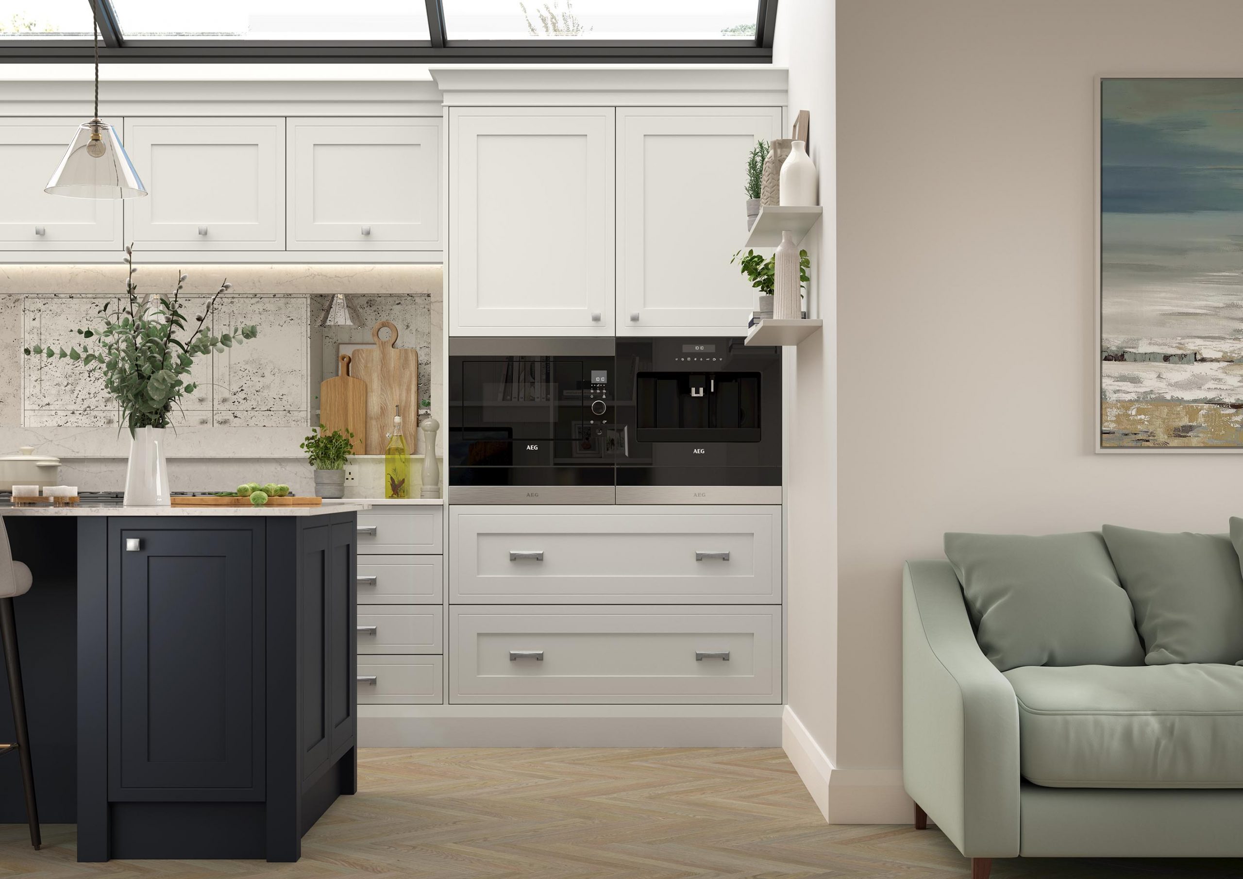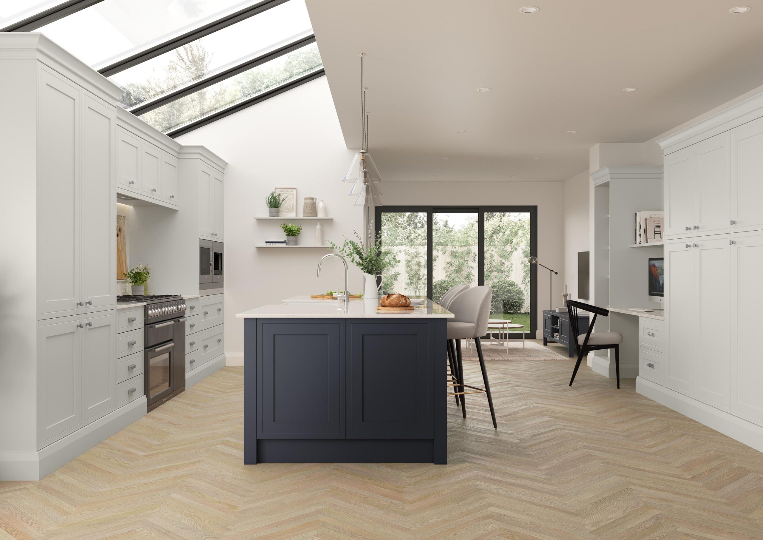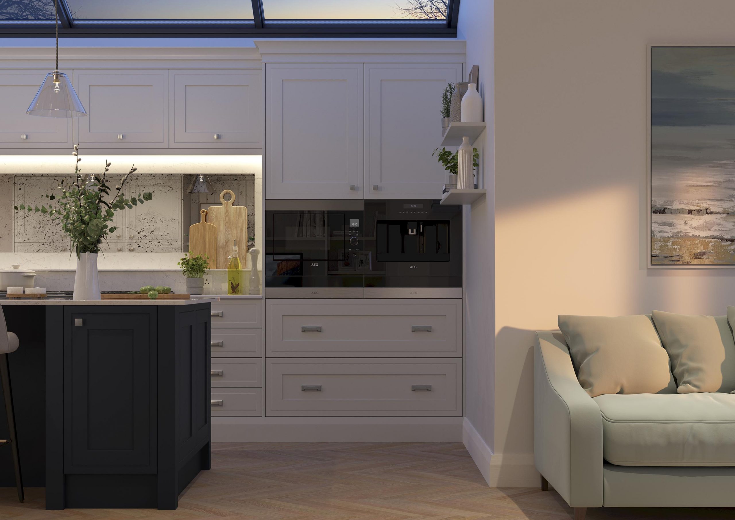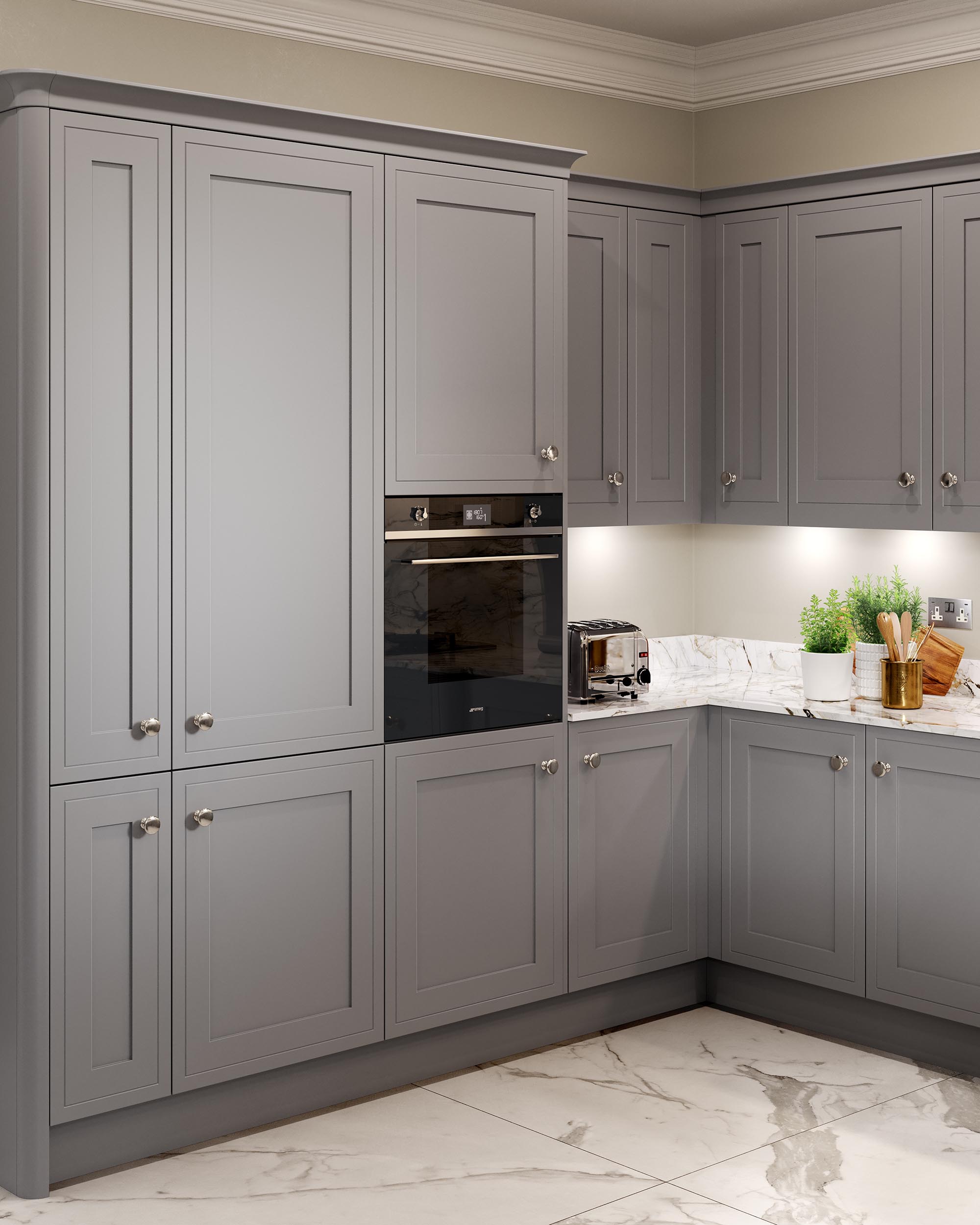 A timeless classic, Ellesmere offers style in abundance. Its subtle line detailing on the outer front of the door creates the illusion of a true inframe kitchen but with a more affordable price tag. Ellesmere’s superior smooth matte painted finish and wealth of accessories combines luxury and practicality to create a kitchen that’s perfect for everyday living and entertaining.
